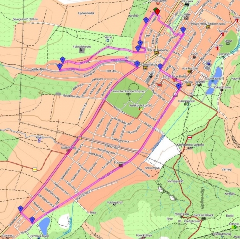 Ez egy városi séta a térképen megadott útvonalon. Körtúra, tehát bárhonnan kezdhető és bármely irányba teljesíthető. Nem bonyolult van benne egy kis kavicsos út emelkedővel többi, főleg járdán. |