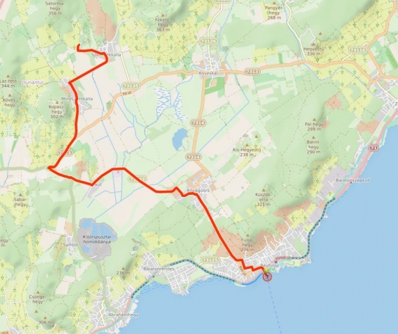 | Túránk Szentbékálla Kőtengerből indul a Balaton partjára. Végig közúton haladunk, Mindszentkálla, Kékkút, Kővágóőrs, Révfülöp útvonalon. Egészen a Balaton partjáig tekerünk. |