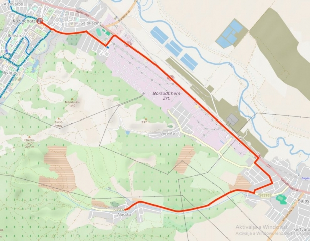 | Kazincbarcika Fő teréről indulunk Sajószentpéterig kerékpárúton, bár van benne egy 1km szakasz ahol már elég elavult. Sajószentpétertől már közúton tekerünk Alacskáig, alig van forgalom. |
