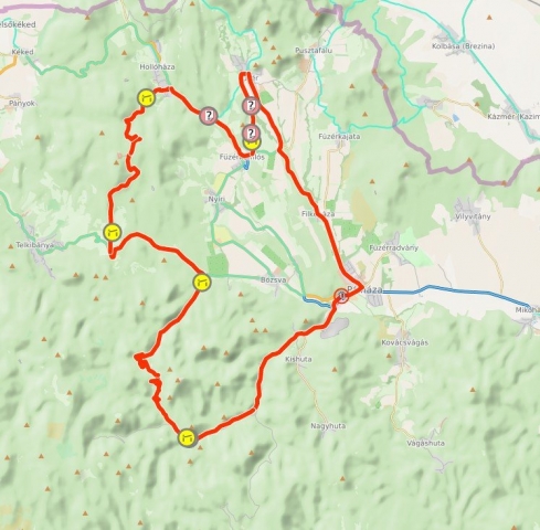 Egy közepesen nehéz körtúra, ami indulhat bárhonnan és bármely irányba a túra nyomvonalán. Leírást Pálházai indulással csinálom. Kőkapu irányában magyünk Rostállóig a kisvasút mellett tekerünk végig. Rostállón jobbra haladunk, 1 km után van egy bal kanyar, de mi itt egyenesen megyünk tovább egy földúton. Érdemes nézni a térképet, hogy tudjuk követni az utat. Ez túránk legnehezebb része, 2,5 km után élesen jobbra felkanyarodunk. (Ha egyenesen megyünk egy 1,5km kitérővel Sólyom-kő nézhető meg.) Innen már nincs messze a tető. Itt balra tartunk, valaha aszfaltozott úton, nyomokban még látható, de csak óvatosan száguldjunk lefelé. A Telkibánya (balra) felé vezető útra kanyarodunk rá, ahol útba ejthetjük a Mátyás Király kútját. Még jóval Telkibánya előtt jobbra letérünk a Kánya-hegyre vezető útra. Ez is jó minőségi aszfaltozott út, viszont emelkedik rendesen. A tetőn lehet pár száz méteres kitérőt tenni a Nato torony irányába. Innen egyenesen indulva, egy földúton jutunk el Hollóházára. Utunk hátra lévő része már végig aszfaltozott lesz. Füzékomlós irányába tekerünk, lesz némi kerékpárutunk is. Füzérkomlós végén balra fordulunk egy nagyon szép erdei kerékpárútra, ami egészen Füzérig visz minket. Füzéren érdemes megnézni a várat (van hozzá az oldalon külön gyalogtúra). Most jön a túra könnyedebb része, mert innen Pálházáig már végig lejt az út, 9km-n át. |