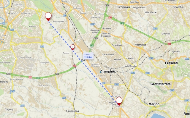 A Via Appia történetét alább olvashatod. A túra kezdőpontja a Via Trebazia keresztőződésénél kezdődik, innen már tilos autóval behajtani a Via Appiára. Persze fogunk találkozni néhány autóval, mert az itt lakók behajthatnak. Nyíl egyenesen haladunk az ókori műemlékek között. Ez egy igazán kellemes séta azoknak akik szeretit az ókori történelmet. Mert itt érzi az ember 2000 év történelmét.Végig ókori romok mellett haladunk el, de ahogy távolodunk Rómától egyre ritkulni fognak. Frattocchie környékén már alig érzékelünk valamit a múltból, de megéri a gyaloglást.