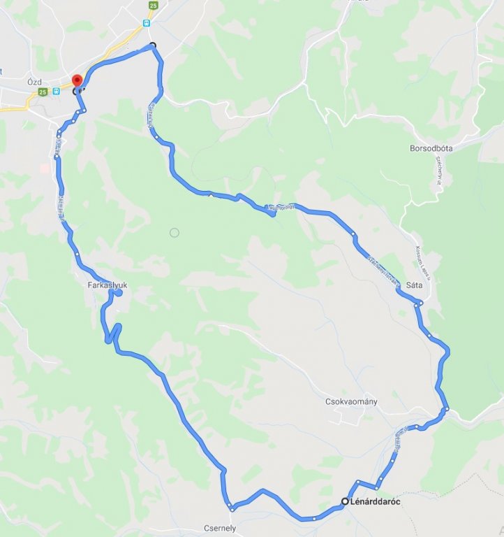 Körtúra, bárhonnan és bármely irányba teljesíthető. Ózd, Farkaslyuk, Csernely (még a falu előtt balra fordulunk), Lénárddaróc, Sáta útvonalon tekerünk végig, az út többségében jó minőségű aszfalt, kisebb dombokkal nehezítve. |